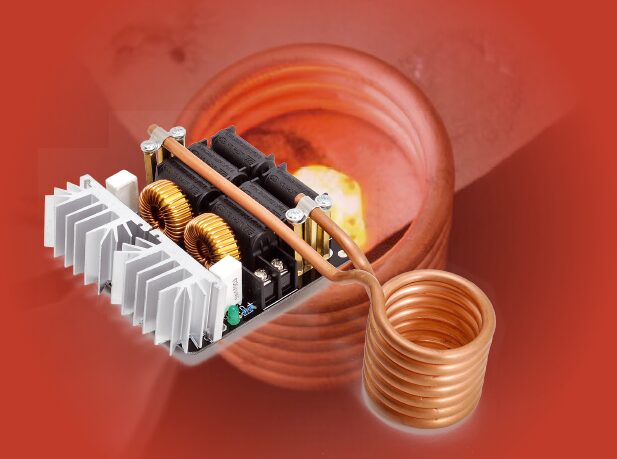 Our project demonstrates how to heat and even melt electrically conductive and especially ferromagnetic materials using a ZVS-type circuit with a nominal power of 1,000W, which can rise to 1,500W under certain conditions. ZVS stands for Zero Voltage Switching, a technique used in power electronics converters to improve efficiency.