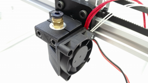 Let’s move on now to the print head, that will be applied to the printhead carriage, by applying the fan’s clip on the winged body of the print head; the wires will have to go as in and will have to be secured by means of a strip.