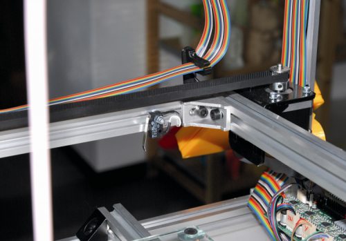 As regards the wiring, and after having blocked it on the machine chassis, by means of spacers, please remember to connect the wires of the stepper motors to the corresponding connectors, via some flat cables that you will have readied. The correspondence between motors and connectors is as follows: the X-axis motor goes to X-MOTOR, the one for the Y-axis must be connected to Y-MOTOR, the one raising and lowering the print head goes to Z-MOTOR, while the one that makes the extruder’s filament advance goes to E-MOTOR. As regards the limit-switches, they respectively go to XSTOP and YSTOP, while the one for the print head must be connected to ZSTOP.