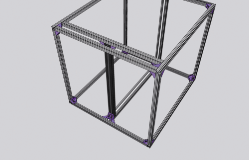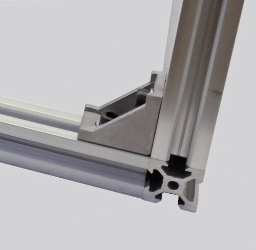 As a first thing, you will have to assemble the chassis frame, by joining two 690 mm 20×20 aluminium bars and two 588 mm ones; the assembly of these bars (and of all the other ones that are used in the printer) will be carried out by means of die cast aluminium angle brackets, of M5x10 TCEI screws, and of TM5 nuts. Such a solution grants rigidity and stability to the machine chassis.