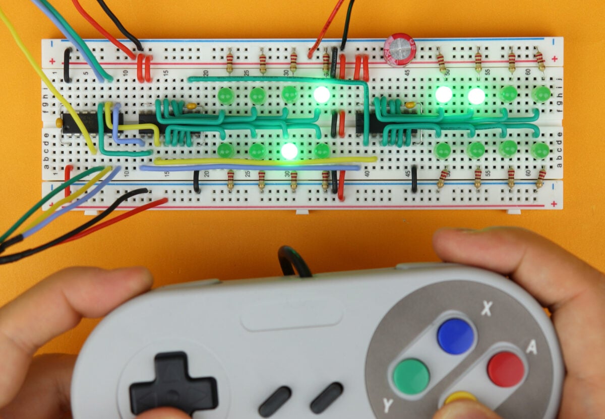 We will find out in this tutorial, where we will learn how to use shift registers to control LEDs and read buttons with just three wires!