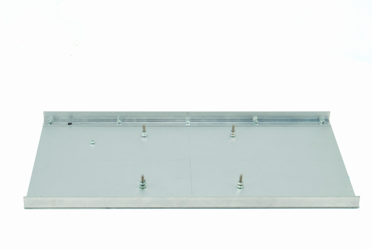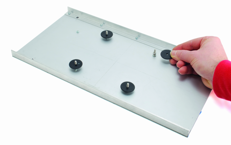 Mount together the 450mm section to the two 850mm side sections and lock them in place by tightening their angle brackets screws, then position the bars so that they are parallel and equidistant from the base side profiles. Slide the tray from one end to another to make sure it moves freely and tighten gradually and alternately all the screws on the support bar. If the tray movement is not smooth, repeat the alignment. Attach to the base, with a 200 mm tie, the tray flat cable. The result should be the one visible in figure.
