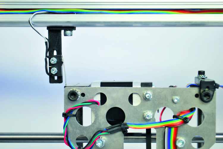 Move the plate toward the X motor so that the nozzle is aligned with the end of the plate itself and then fix the limit switch so that it is triggered at this very point. Finally tighten with an Allen wrench the M5 screw; this adjustment is not critical but determines the X-axis “HOME” position. Now you can finish the job by fixing with a 100mm plastic cable tie the wiring.