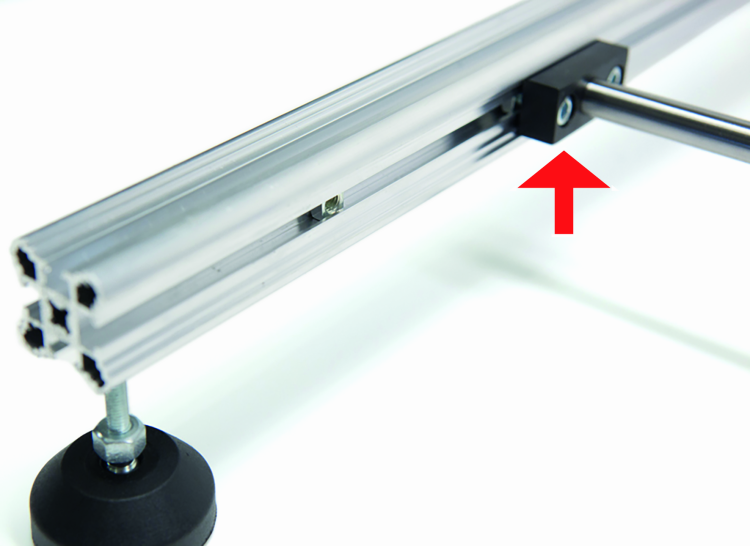 Now take the two 10 mm diameter and 797 mm long ground round bars and insert them first on the X-tray sleeves, then in the related supports previously fixed to the rear base profile (the 450 mm one); the situation will be that visible in figure.