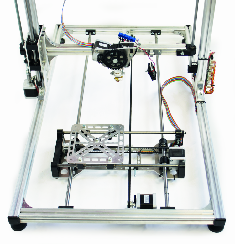 Without much fussing, we will explain how to turn your 3Drag into a 3Drag Big: to upgrade the standard model you have to replace the two side profiles of the base frame with longer ones (850 mm), the X-axis two Ø10 mm ground steel rods with two longer (797 mm), the X-axis belt with a 1.5 m long (available as spare part on openstore cod. BELT6T5 / 1500 / SP) and the original printing plate with a wider one, by 405×205 mm.