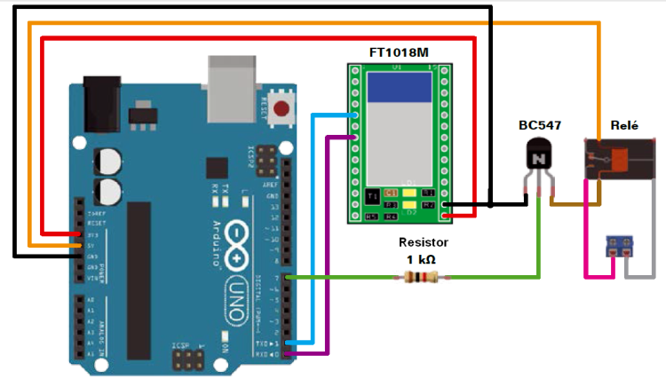 The circuit to be created is the one in Fig. 5, there we will find a transistor being used in switching mode, for the purpose of commanding a relay. The remote control’s transmitter button is connected to the two terminal block’s contacts, that depend on the exchange normally opened by the relay (C-NA). When the relay is excited, the contact will turn out to be closed and will activate the transmission on behalf of the remote control, that will send the opening command for the automatic gate.