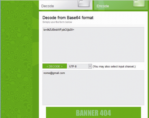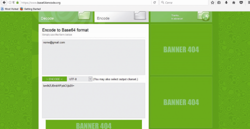 Very well, now you have to convert the email address and the corresponding login password in encode format base64, through the website https://www.base64encode.org/. Piece of cake!