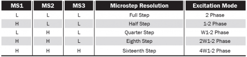 The drivers for the stepper motors have this mode set as the default one by the manufacturer, however, if you want to modify it you will have to refer to Table 1, that shows the driver settings by means of the control pins.