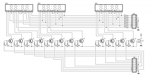 In our project, the digits are grouped by 4 in three 4-digit, common-anode displays, each one predisposed for multiplex control, therefore on its pins it has terminals of the segments of the four digits, connected between corresponding segments.