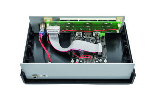 Once the firmware upload is completed, disconnect the board from the DC, connect the two units using the flat cables (remember that the CN4 connector of the LED matrix controller board goes to CN2 and CN5 of the LED matrix controller board goes to CN1 of the display board) and power the LED matrix board through to two eyelet terminals; you need 5 V DC with a current of around 600 mA. In order to run a test, check if the displays turn on, then, if you have a simple signal with the frequency value ranges from 100 kHz to 4 MHz, you can use a probe with BNC connector (that you will connect to the BNC plug on the left side of the LED matrix board), touch the point (the ground crocodile clamp must be applied to the ground of the circuit generating the signal) and verify what the tool shows.