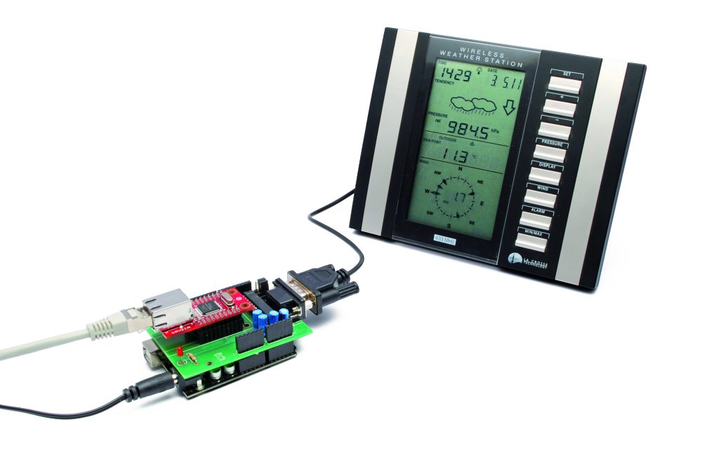 This circuit reads data from a weather station with serial interface and upload the data collected on http://www.wunderground.com.