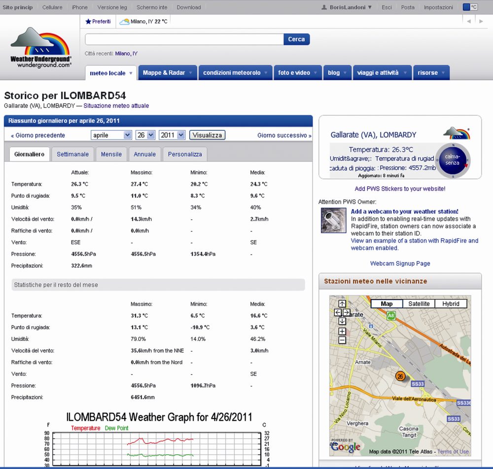 The use of the site www.wunderground.com for the publication of meteorological data is free and subject only to the rules of the provider, there are also advanced features, including the addition of photos and images from a webcam filming on location is the weather station and sent through the Internet.