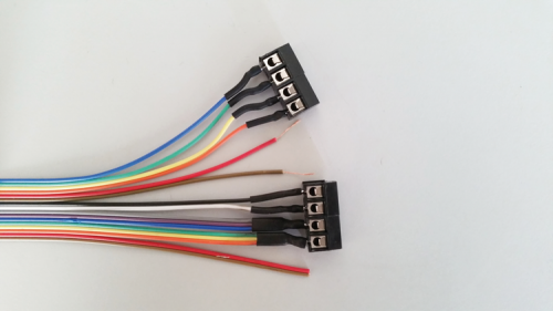 – the Blue, Purple, Grey ones of the flat-cable to the Red one of the female connector.