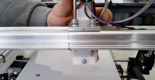 Please insert two stover nuts in the runner and lay down the second extruder by slightly tightening the support’s screws.