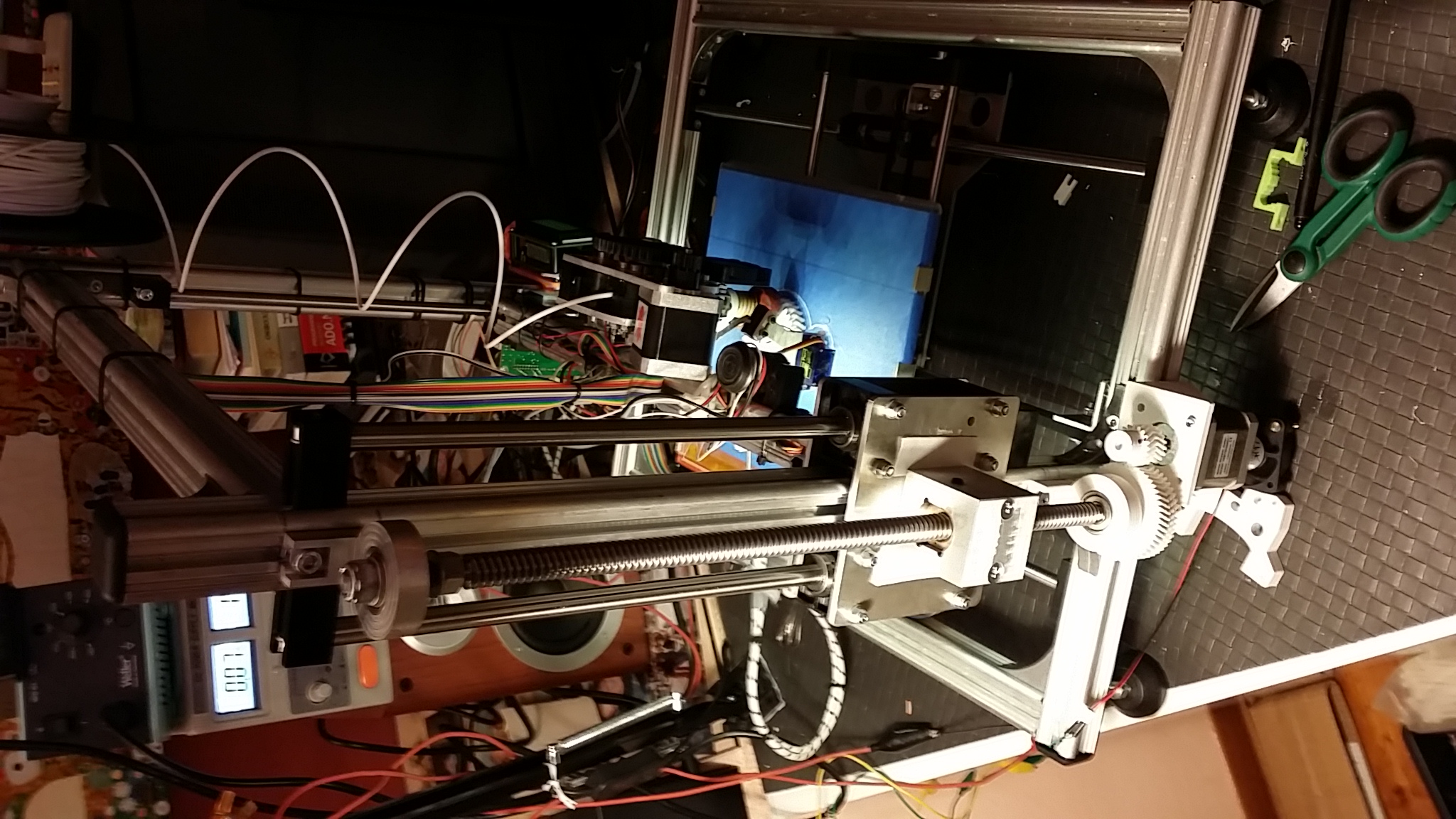 Alessio Fusi hacked his 3Drag/K8200 printer by replacing the original threaded rod with a trapezoidal rod, assembled with a gearbox between it and the stepping motor with a reduction rate of 50:20.