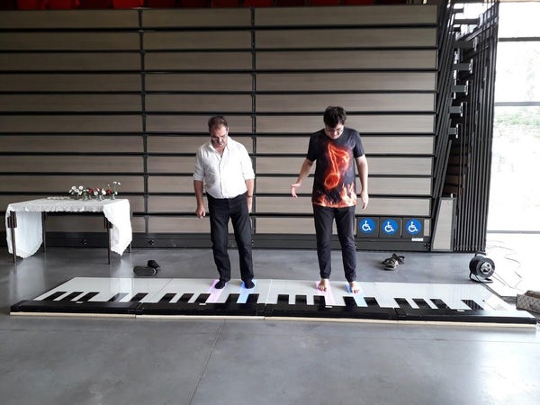 The author’s goal was to build a huge floor piano using readily available and inexpensive materials. The result is astounding considering it was built entirely at home.