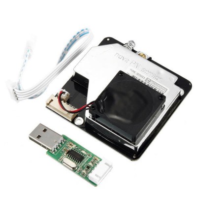 This module uses the principle of optical LASER light scattering to measure the concentration of particulate matter (PM2.5 and PM10) in the air. It consists of a LASER diode, a photodiode, a microcontroller, a low-noise amplifier and a suction fan.