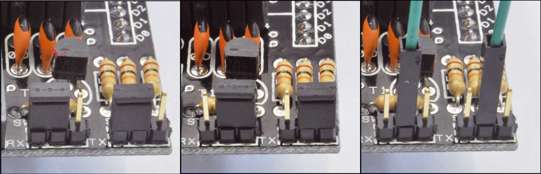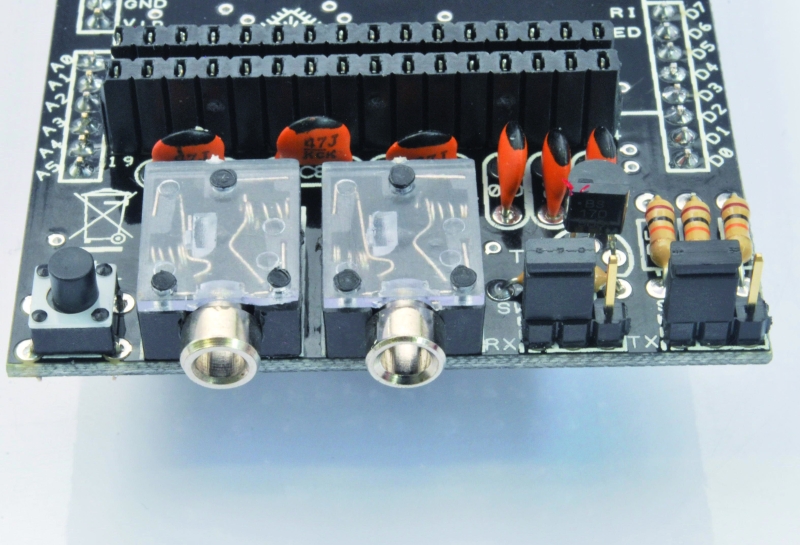 To preserve compatibility with the Arduino Mega, we changed the selection method for the serial communication. The two different serial communication modes (hardware or software) are selectable by jumper, leaving the user the choice between the two configurations ( for serial software in this new version we adopted pins 2 and 3) or possibly use the pin to your choice with a simple wire connection. With this solution you can use the Arduino Mega using two of the four serial that it has, or possibly carry out the communication through a serial software via two pins of your choice.