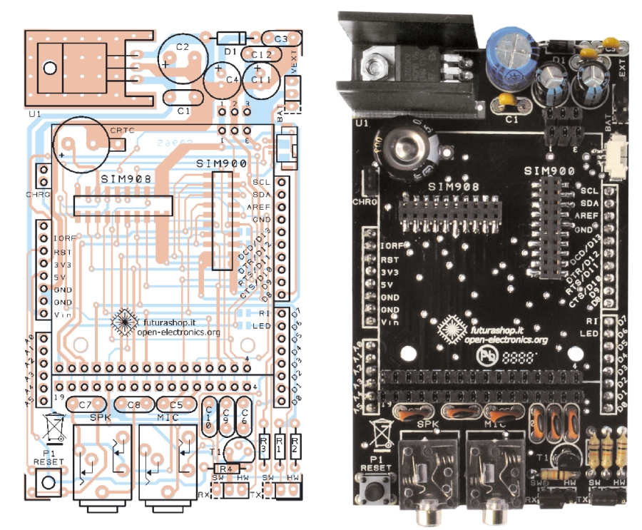 A further feature of this new version, concerns the presence of a supercap for circuit dedicated to the RTC (Real Time Clock). Inside the SIM900, as well as the SIM908, there is a circuit that is responsible for updating the clock even without power.