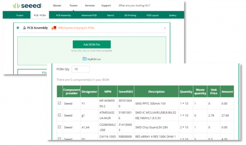 Seeed takes all the hassle out of parts procurement on your behalf. Components are sourced from reputable partners including DigiKey, Mouser, TME and Element14 to ensure reliability. The online platform can match the parts in the Bill of Materials (BOM) to supplier databases directly and give you a quote in seconds.