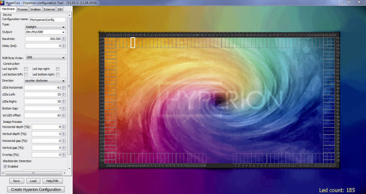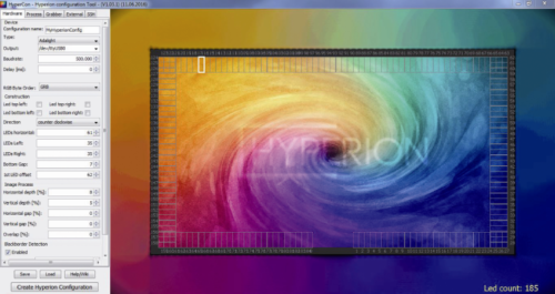 There are several software’s just to analyze the various video sectors during reproduction and assign colors to the LED strips lining the screen, the most famous are Boblight and Hyperion; we went with Hyperion because it has some advantages: the code is much more optimized, since the lag (LAtency Gap) between video and LED coloring is zero (Boblight has almost 1 second delay, in many cases). Besides, the whole system is much more comfortable, allowing us to fine-tune it and calibrate LEDs’ colors, control LEDs from the PC and app for smartphone and execution of lighting animations even when the TV is off.
