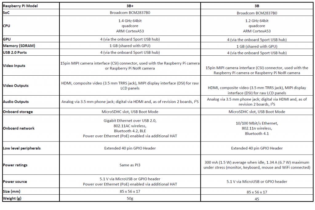 Thus was born Raspberry Pi 3 model B +, where the + indicates the addition of distinctive features that we report in the table above, where you see the comparison between the data of the model B and those of the model B +, so as to easily make the comparison.