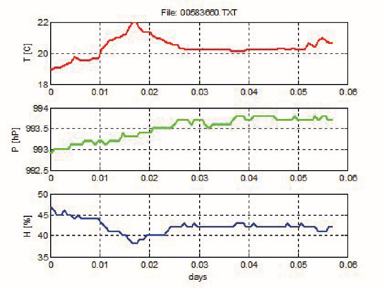 This sampling, as seen in Fig. 13, was done with 60 second period, so the physical variables varied little and the autoscale creates the typical steps.