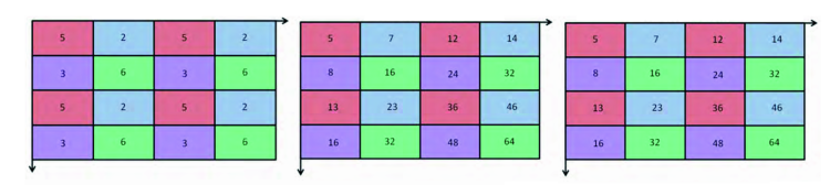 The process consists in assigning to a certain pixel with a certain position within the matrix (image) the sum of all the pixels that are there in the area above and on the left of its position. Starting from the pixel up and on the left and continuing to the right and downwards, the incremental calculation process of the value for each pixel is definitely efficient.