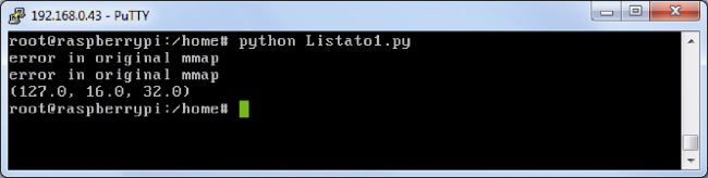 In Code, the “subprocess.call()” function allows you to launch an external process, and to wait for this to be terminated before continuing with the processing. The external process that is launched is the “raspistill” allowing you to acquire a single image and save it with the desired name. The “Image()” function loads the specified image file in a variable. The “show()” function shows the image on screen. Finally, the “img()” function allows us to access the contents of the image itself, as for reading and writing. Let’s copy the program of the Listing 1 in a file named Listato1.py in the /home folder and we will execute it with the command: