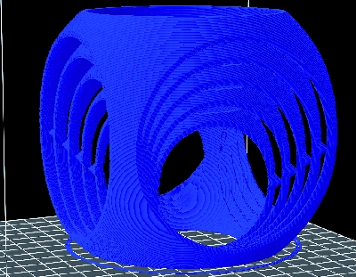 This is not an easy print: it necessitates various time consuming tricks, needed to ensure a good outcome. The first thing to do is to set for a ticker extrusion to give greater strength to the various pieces that – by design – are quite thin and delicate. We adopted a 2.8 mm plastic wire diameter and a 1.3 multiplication of the amount of material used. In the various trials we also found that the nozzle tends to bump into parts of the print each time that it goes from one of the four elements that go up vertically for each cube to another. This provokes vibrations and shocks that with high probability will lead to detachment from the platen. The solution to the problem was to enable the lifting of the extruder while on the move and this will put a strain on the threaded bar of your Z axis. Even the printing time are affected by this vertical movement added to the horizontal displacements, but shocks and mechanical stresses are reduced greatly, avoiding the danger of detachment.