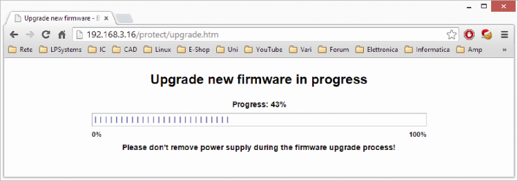 The firmware update process may take some time and it is very important not to remove the USB pen-drive or unplug the power connector: you risk freezing the board, making it unusable.