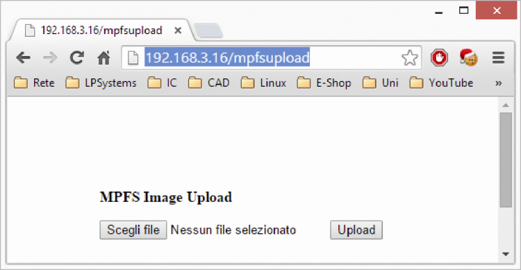After this stage you will need to update the management web pages, so you may need to access from the browser to the IP address assigned by DHCP; for example, the URL may be http://192.168.3.16/mpfsupload; or, if you are using a MS Windows pc with NetBIOS enabled, simply go to http: //MCHPBOARD/mpfsupload.