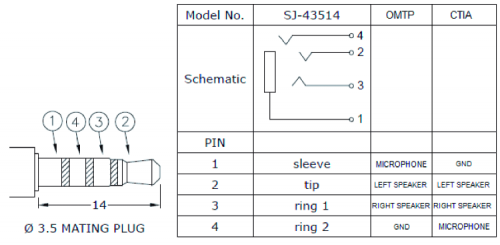 The difference is in the contact of the microphone, which is in different positions. Our electronics are designed to work with both OMTP and CTIA formats: by mounting resistors R54 and R55, the CTIA standard is selected, while by mounting resistors R52 and R53, the OMTP standard is selected. The connector used SJ-43514, JK1, is a 3.5mm jack of the CUI-INC which has the pin-out shown in Fig. 8b, where you notice the correspondence between the jack in OMTP/CTIA format and the contacts of the connector, as already widely said, the only difference between the two formats is that the microphone line and the GND are inverted.