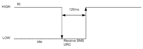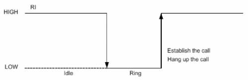 Fig. 6 describes the signal trend on the RI line (Ring Indicator) with regard to the reception of an SMS while Fig. 7 shows the trend during the reception of a voice call.