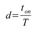 The converter control is obtained by varying the duty-cycle or by acting on the ON and OFF times of the switch as indicated by the following: