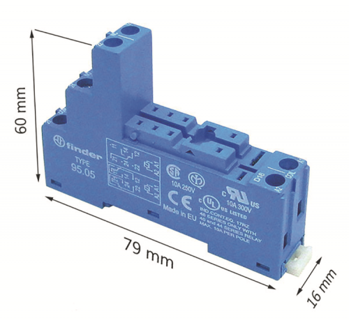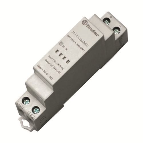 Given that the relays of the 40.61.7.024.4001 series were born in order to be mounted on the printed circuit board, while we need to mount them on a DIN rail for an electric panel, it is needed to acquire some dedicated Finder sockets. In particular, we need those of the 95.05 series (terminal box clamp socket, mounting to panel or 35 mm rail), as shown by the example in Fig. 4. If you so prefer, there are some relays for a DIN rail, still manufactured by Finder: they are of the 22.21.9.024.4000 type, with a 24Vcc coil absorbing a 52.2mA current. Our electronics are not capable of supplying a current of about 365mA in order to drive 7 relays such as these ones. In this case, it would then be possible to opt for an external power source, as indicated above, or to use a maximum of 4 relays with our electronics, thus leaving 3 lines free. We would like to point out that it is not mandatory to use all the seven available lines; the user is free to use as many as he wishes; what is really important is that you start wiring the electric system from the line 1, until you reach line 7. The 78.12.1.230.2400 (by Finder, as per model is shown in Fig. 5) or the DSP10-24 (TDK-Lambda) could be a possible external power source for an electric panel that would be capable of supplying the current needed in order to drive the 22.21.9.024.4000 Finder relays.