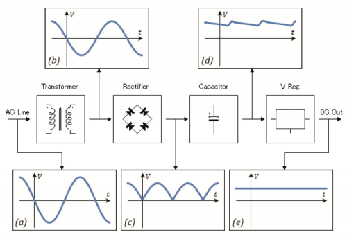 Let’s start with the foundation board and describe the power source section; Fig. 3 shows the function blocks in which it is possible to divide our power source section, that is to say: the flyback transformer, the diode bridge, the level capacitors and the voltage regulator. The power for the relays is drawn upstream of the voltage regulator.