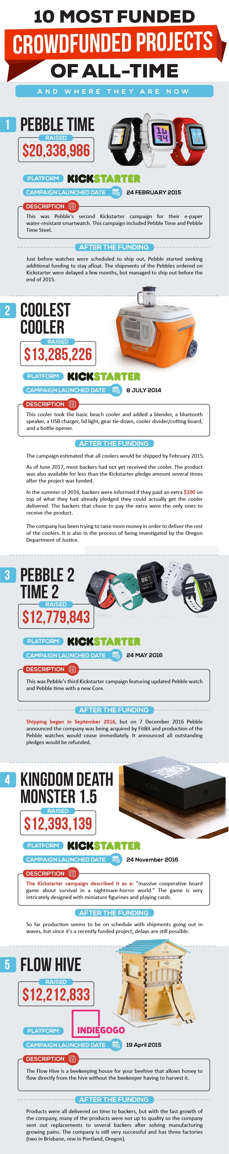 Take a look below and find out who won their way onto the top ten most crowdfunded projects of all time, and what happened to the companies and products after the completion of the project.