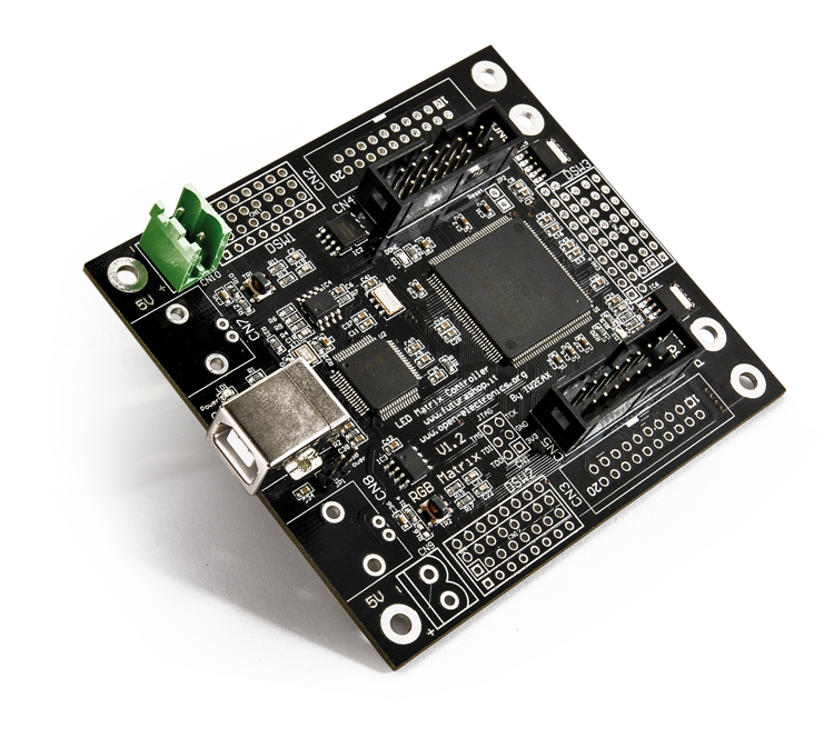 We decided to extend all the I/Os towards the connectors and the pads where to mount both input devices and connectors, so to give you the possibility to use the board more comfortably, if you’ll decide to use it to develop applications that are different from the control of RGB LED matrices.