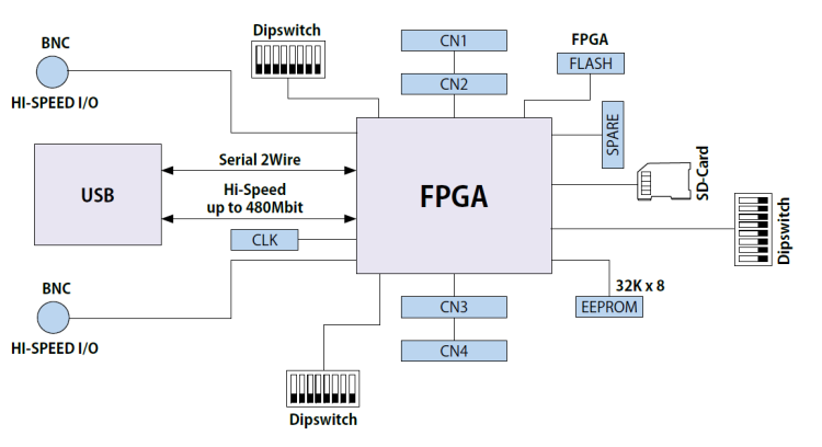 For this reason, in addition to the USB, the computer used for sending data to the board, the SD-Card possibly used for loading the program and the serials on BNC must be fast as well.