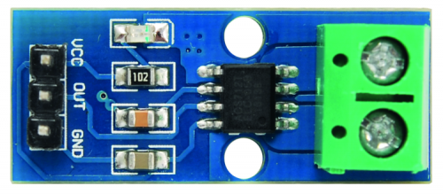 In this project, we will use the 5 A version, which can be used for many low-voltage applications, but also for the power grid. In order to stay within the output voltage range compatible with the power, note that 20 and 30 A sensors have lower sensitivity than the 5 A version; to be exact, the 20 A ACS712 has an output voltage excursion of 100 mV/A, while the 30 A one has a drift of 66 mV/A.