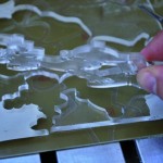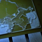 Then we need to impress, deep enough (half or two thirds the thickness of the slab) the drawing or the writing that you want to appear bright.