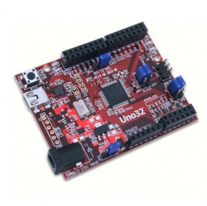 chipKIT Uno32™ Arduino™-Compatible Prototyping Platform combines compatibility with the popular Arduino™ open source hardware prototyping platform with the performance of the Microchip PIC32 microcontroller. The Uno32 is the same form factor as the Arduino™ Uno board and is compatible with Arduino™ shields. It features a USB serial port interface for connection to the IDE and can be powered via USB or an external power supply.