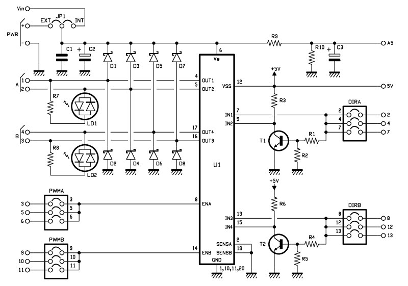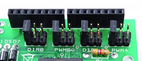 With the jumper DIRA and DIRB the user select the direction of the motor A and B.