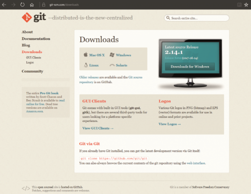 Well, after this long introduction, we may start to work with Git. As a first thing, you will have to install the “engine”, that is to say, Git, that may be downloaded from the following link: (Fig. 2). At the moment this article has been written, the last available release for this software is 2.14.1, but Git is continuously evolving. We would like to remind you to install the version accordingly to your operating system and, if it is Windows, please pay attention to the installation, that is to say, if it is a 32 or 64bit one (you may see that from the system settings, to be accessed from the Control Panel).