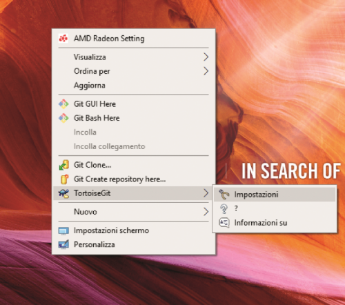 Well, the most boring part, the one concerning the files to be downloaded and installed, has been passed. We now have to verify that the downloaded language has been correctly set in TortoiseGit. How we do that? Nothing easier: let’s get to a clear space on the desktop and click with the right mouse button (Fig. 4).