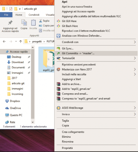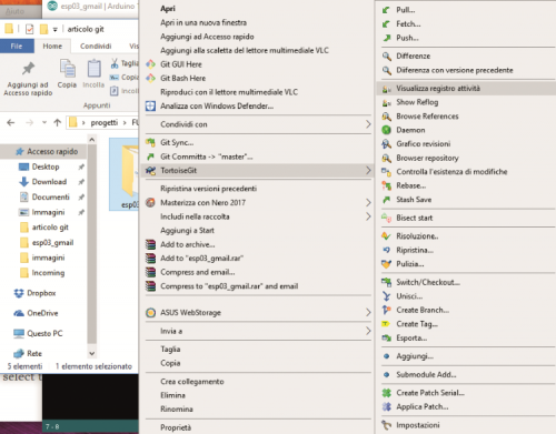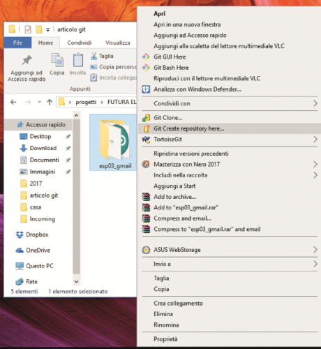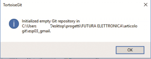 Let’s create therefore an Arduino demo project, and get at the base of the folder containing the project itself, and then click with the right mouse button so to give the “GitCreate repository here” command”. from the context menu opening (Fig. 6).