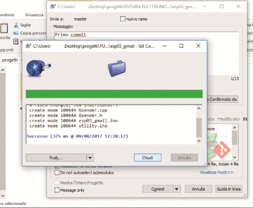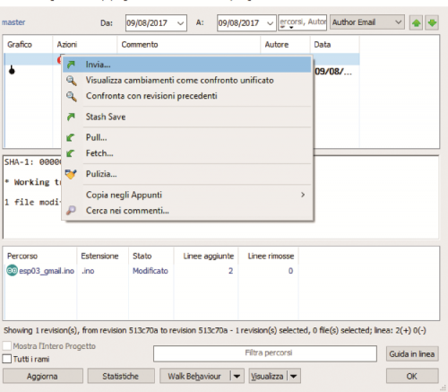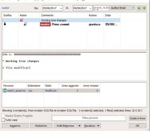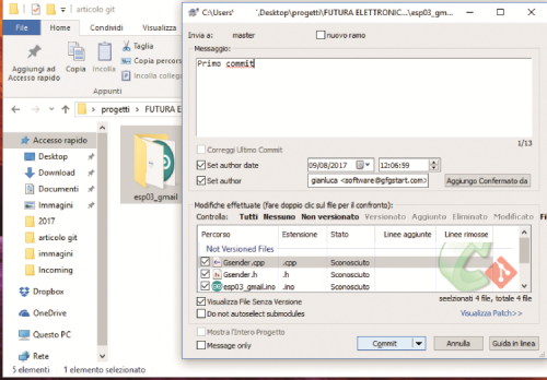Let’s see now a real example: we have a project in the Arduino environment and we wish to set an orderly operation, that keeps track of each modification and enables the saving, each time, of a snapshot of the work that has been carried out and finally that enables us to recover the archived versions without efforts.