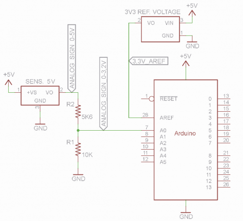 Therefore, if we want to get the maximum accuracy possible, we must use a reference voltage which is equal or slightly higher than the maximum analog value to read. Naturally, this level of precision is not always required, maybe even due to a high rate intolerance by the sensor, therefore this is something to be evaluated each time based on the application.